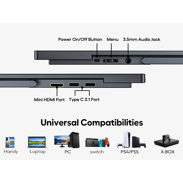 UPERFECT 18.5 Portable Monitors 1080P Touch Screen Gaming 120Hz displays Freesync for PS5/4/3 Switch