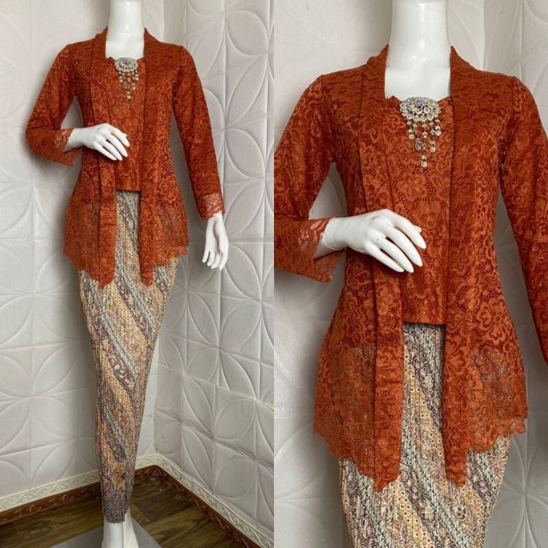 Atasan Kebaya Brokat Modern Set Kebaya Kutu baru Brokat Lengan Panjang Lidya Baju Kondangan Wanita Dewasa