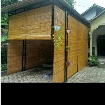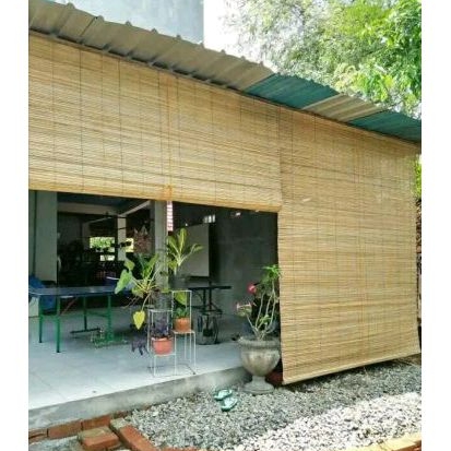 Tirai Bambu Anti Panas Kerey Tirai Bambu Lebar 2 Mter X 3 Mter Tinggi Pliturvernis Bambu Sawit Plus Tali Penggulung