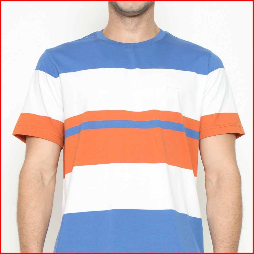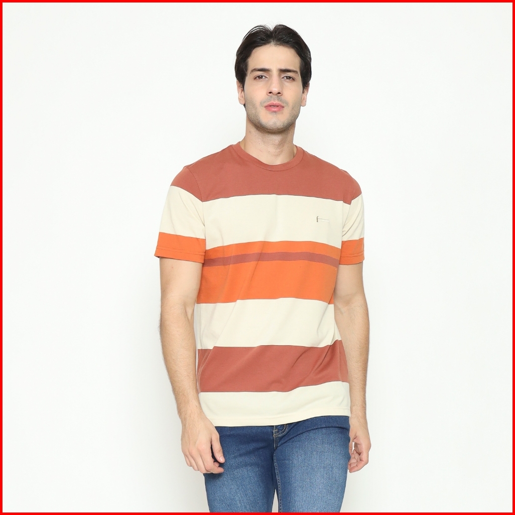 Hammer Men Striped T-shirt J1ots20 I Kaos Pria Salur Orange Biru