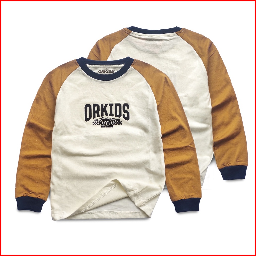 Orkids Baju Kaos Lengan Panjang Anak Laki-laki Umur 1 - 12 Tahun Bahan Katun 24s Tazer White Navy