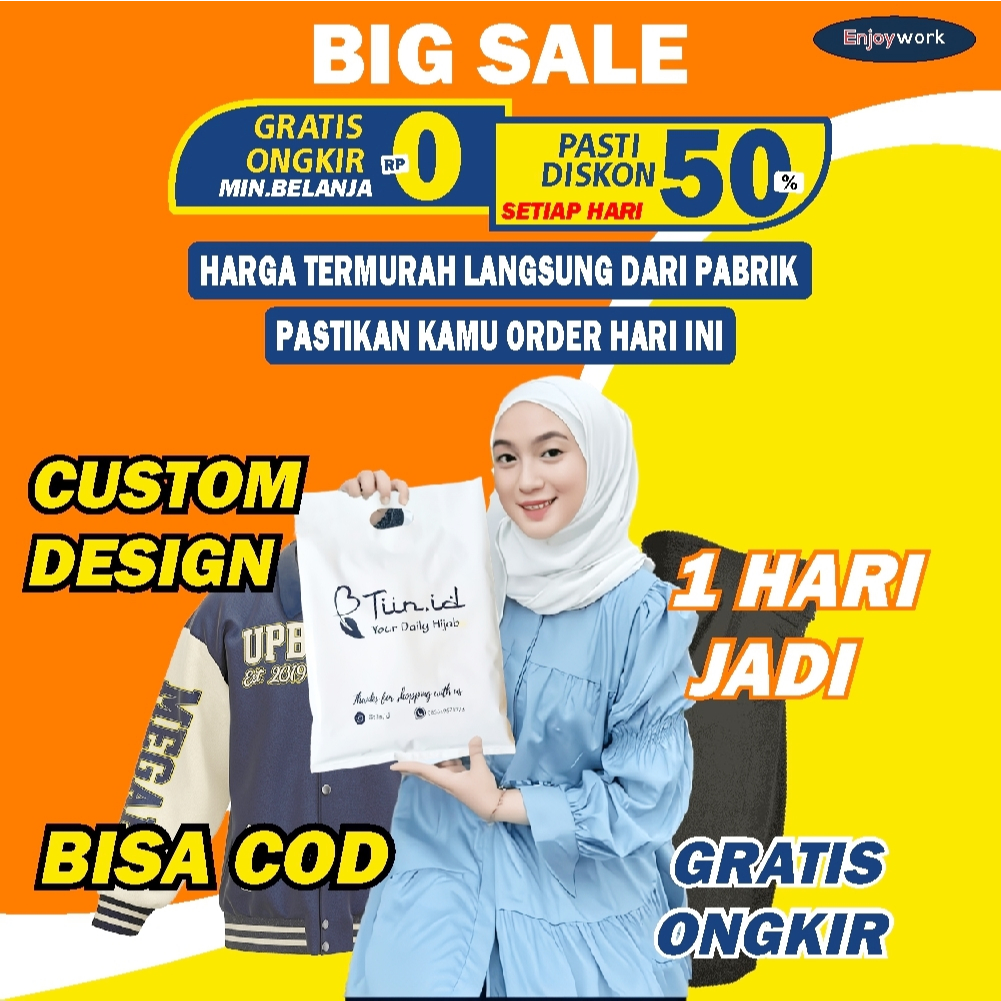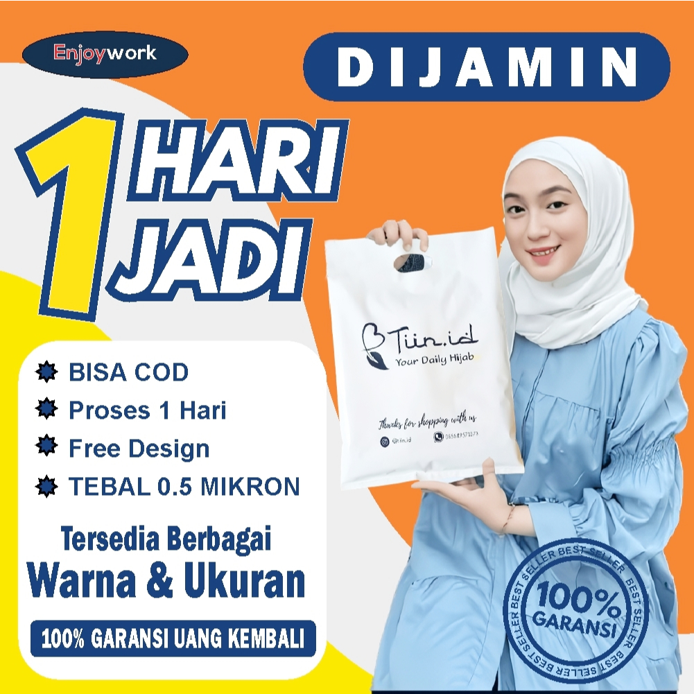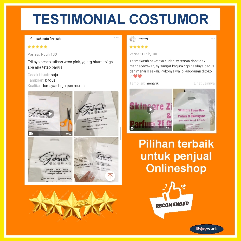 ENJOYWORK 50 PCS PLASTIK SABLON PACKING OLSHOP PLONG 20X30 MURAH FREE DESIGN