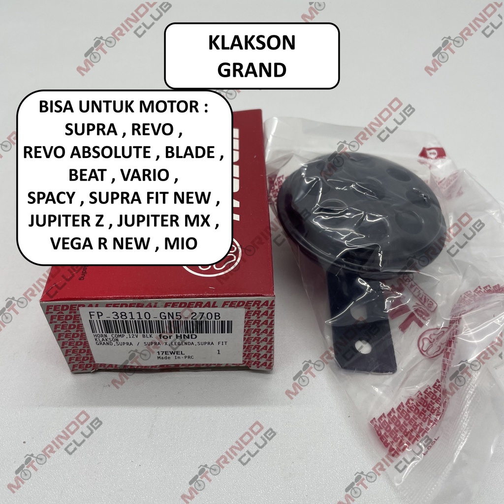 Klakson Motor GRAND ; SUPRA ; REVO ABSOLUTE ; BLADE ; BEAT ; VARIO ; SPACY ; SUPRA FIT NEW ; JUPITER Z ; JUPITER MX ; VE