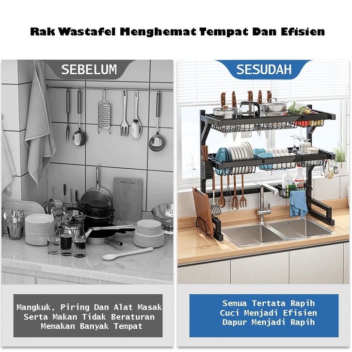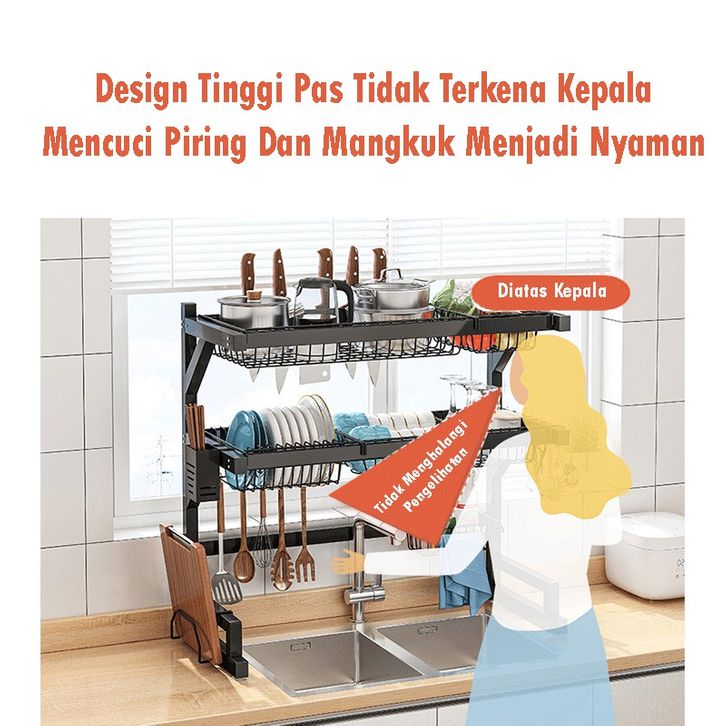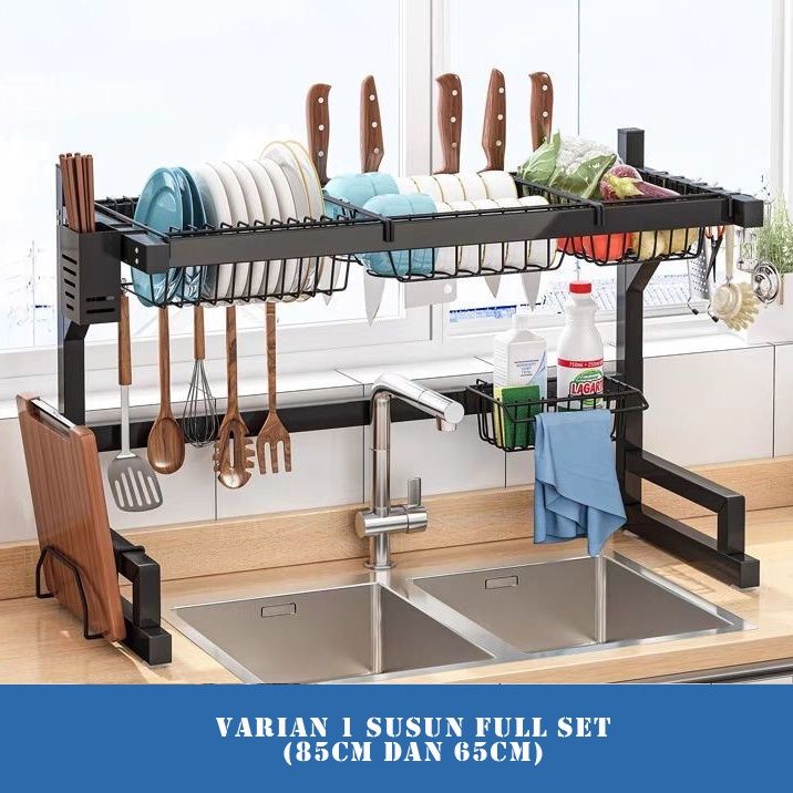 Rak Piring Wastafel Rak Dapur Ollahom Rak Dapur Cuci Piring Rak Diatas Wastafel Stainless Hitam Rak Penyimpanan Piring