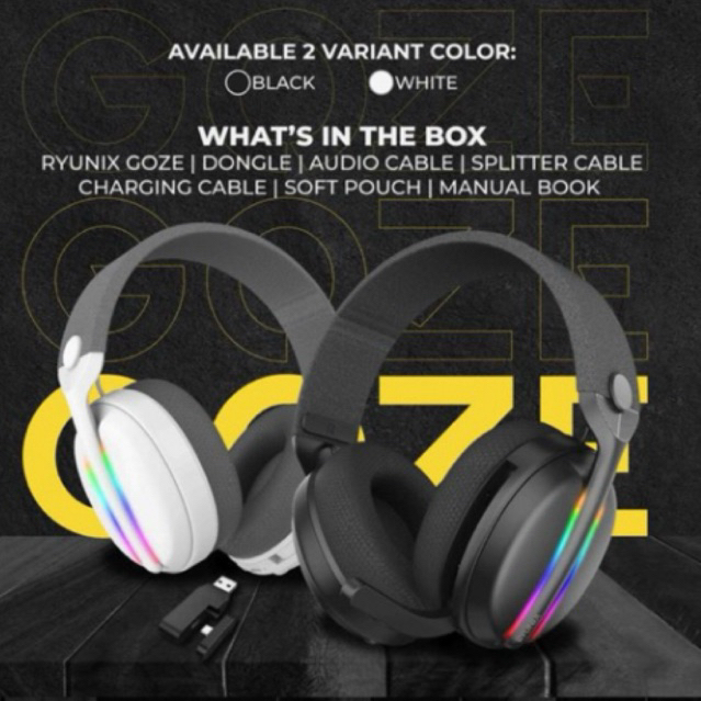Headset Gaming RYUNIX Bluetooth Wireless RGB Goze HX1