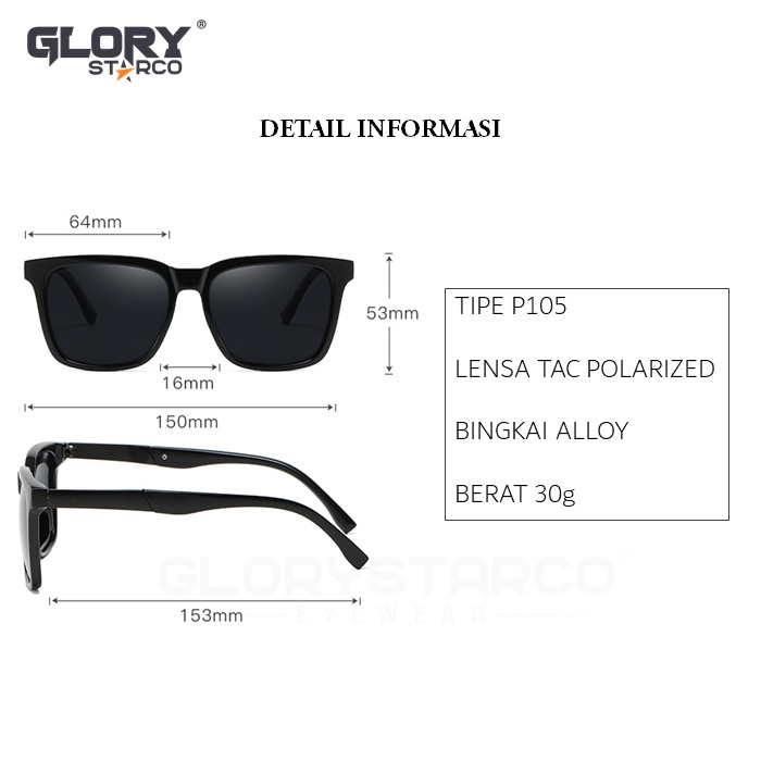 Kacamata Hitam Gaya Kotak Polarized Anti UV Keren P105