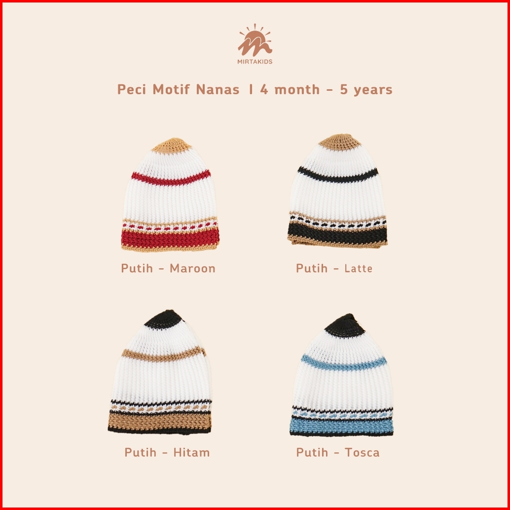 Mirtakids Peci Rajut Motif Anak 4 Bulan- 5 Tahun Katun Rajut
