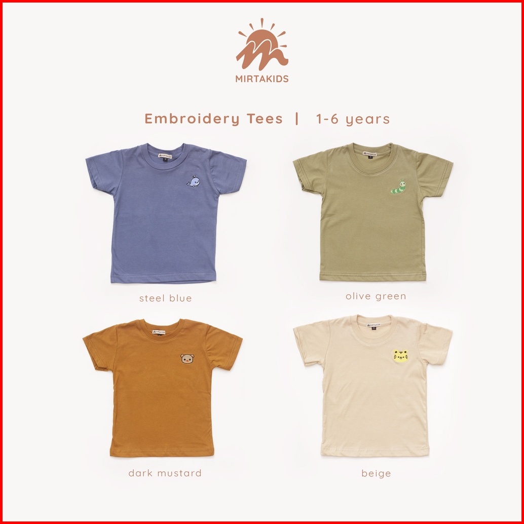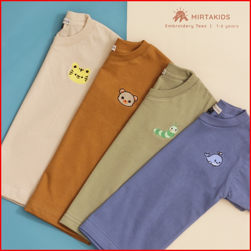 Mirtakids Kaos Polos Anak Bordir Hewan Warna Earth Tone Minimalis 6 Bulan -6 Tahun Baju Anak Laki-laki Da Perempuan Unis