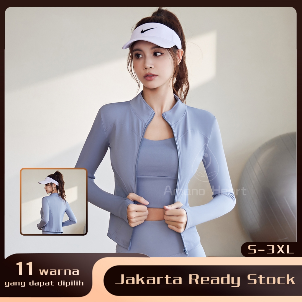 Lengan Panjang Jaket Olahraga Wanita Pakaian Olahraga Yoga Anti Uv Baju Upf50+ Gym Atasan Kerah Pilates Jogg