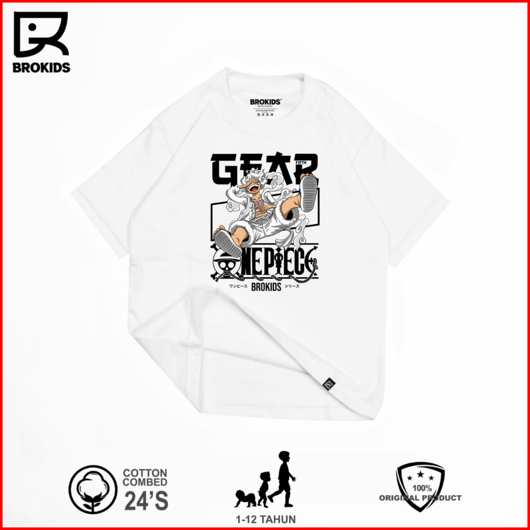 Brokids - Kaos Anak Cotton Combed 24s 1-12 Tahun - One Piece Luffy Gear 5 Hitam