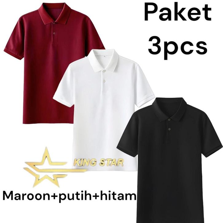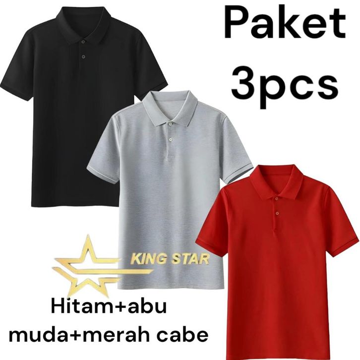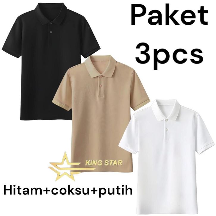 TERMURAH KINGSTAR :PAKET 3 PCS KAOS POLO SHIRT KERAH POLOS /KAOS POLO LENGAN PENDEK/KAOS SERAGAM TRENDY ogahk