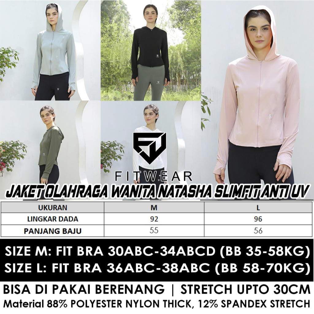 Fitwear - Jaket Olahraga Wanita Dryfit Natasha Slimfit Anti Uv - M - L