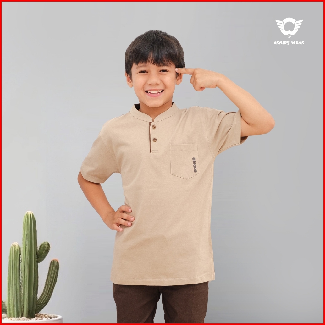 Baju Koko Kurta Anak Muslim Umur 1 -12 Tahun Bahan Kaos Mandarin Kerah Shanghai Orkids Xmoz Cream