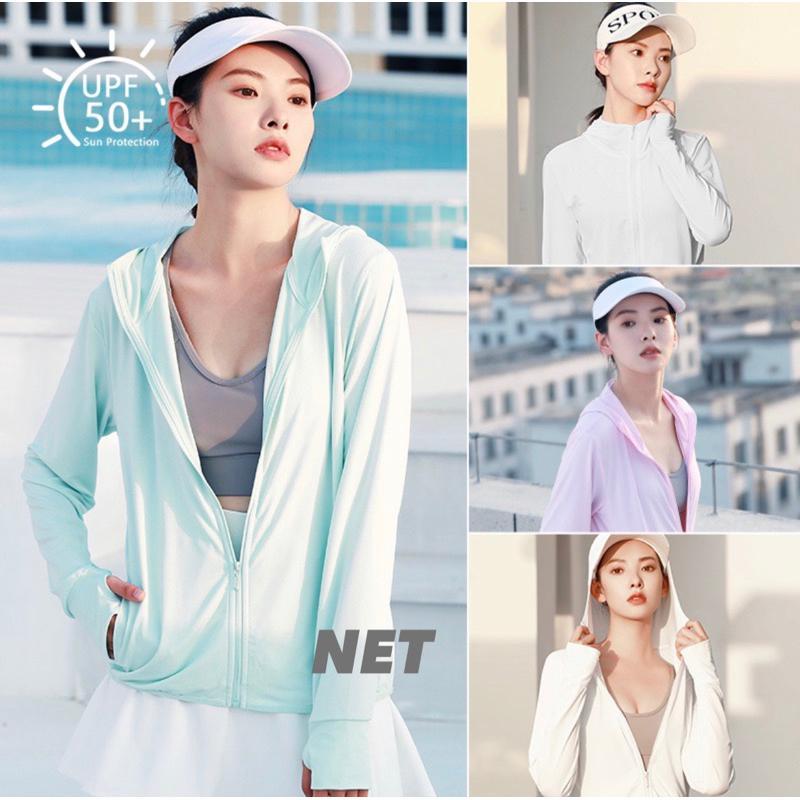 Jaket Olahraga Longgar Anti Uv Upf50+ Jaket Pelindung Sinar Matahari Jaket Dengan Penutup Kepala Cepat Kering