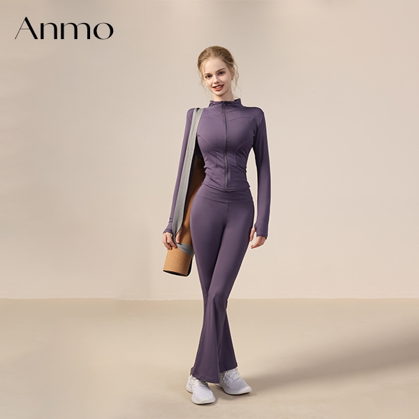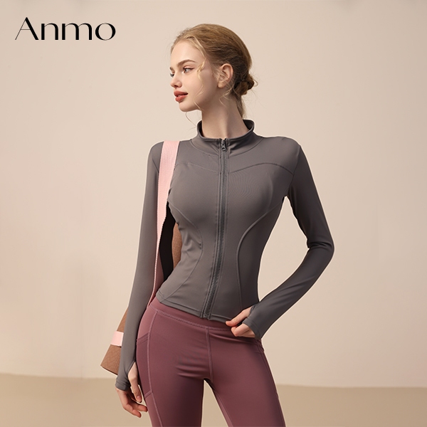 Anmo- Jaket Olahraga Wanita Lengan Panjang Pakaian Yang Cocok Untuk Olahraga Yoga Gym