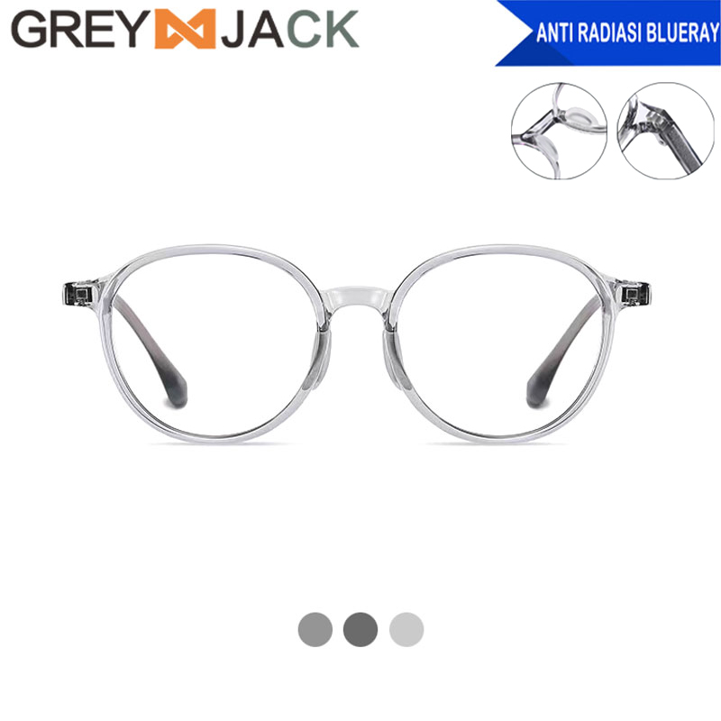 Grey Jack Kacamata Antiradiasi Blueray Style bulat Tr90+Silicon sangat lembut dan nyaman Kekinian Bisa Minus