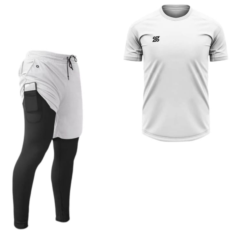 Stelan Baju Jersey Dan Celana Panjang 2In1 Badminton Gym Running Fitnes Voly