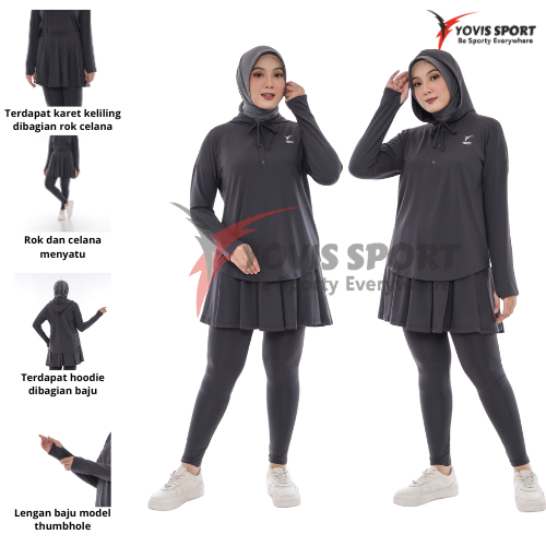 Setelan Hoodie Sporty Wanita / Oneset Padel / Setelan Olahraga Muslim Yovis Sport