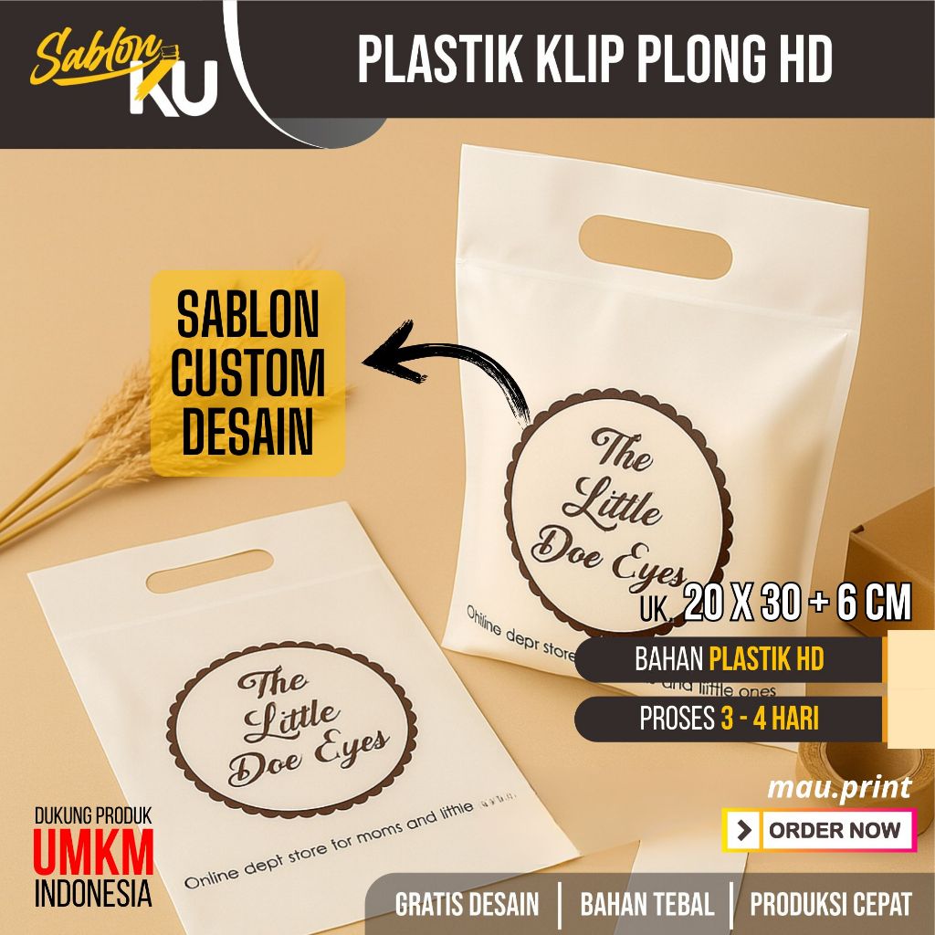 PLASTIK PE KLIP PLONG POND ZIPLOCK ZIP LOCK CUSTOM DESAIN SABLON UK. 20X30 +6 CM TEBAL PACKING MURAH