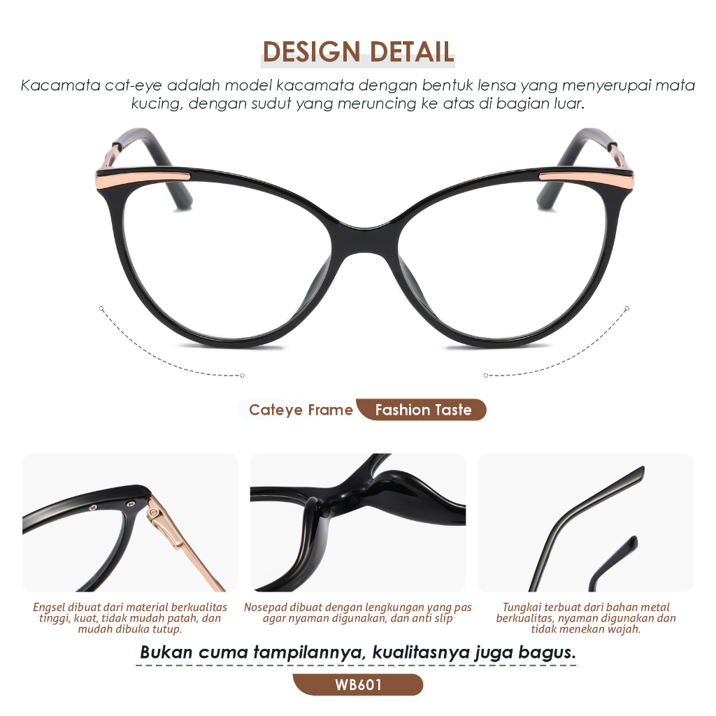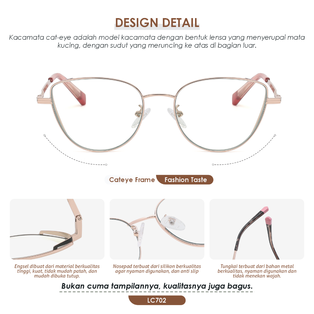 La Chapella Kacamata Wanita Model Cat Eye Minus Anti Blueray Photocromic Bahan TR-90+Metal LC702-WB601-WB605-WB612