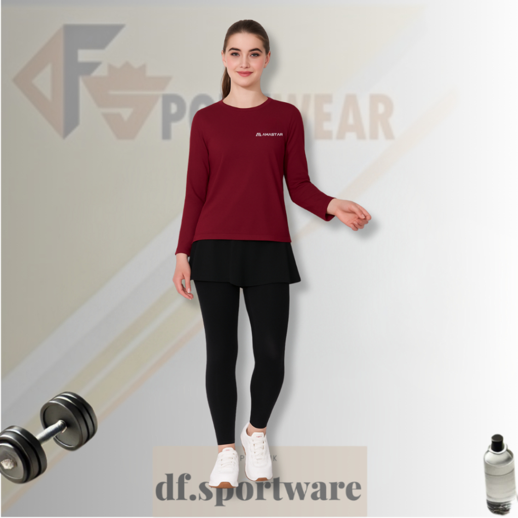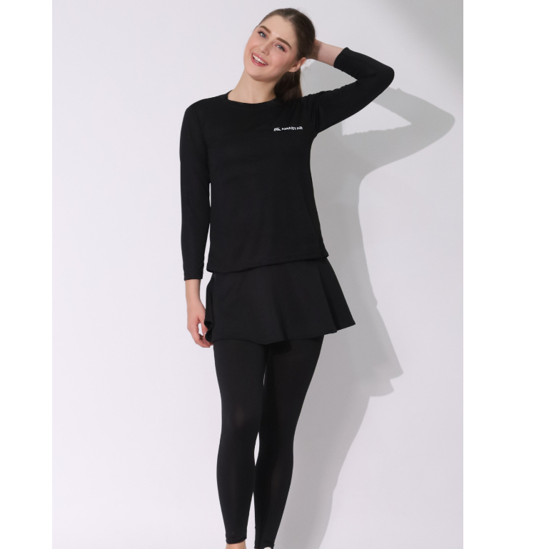 Setelan 3In1 Kaos Jersey Athletic Lengan Panjang, Rok Pendek, Legging Olahraga Wanita Aktif