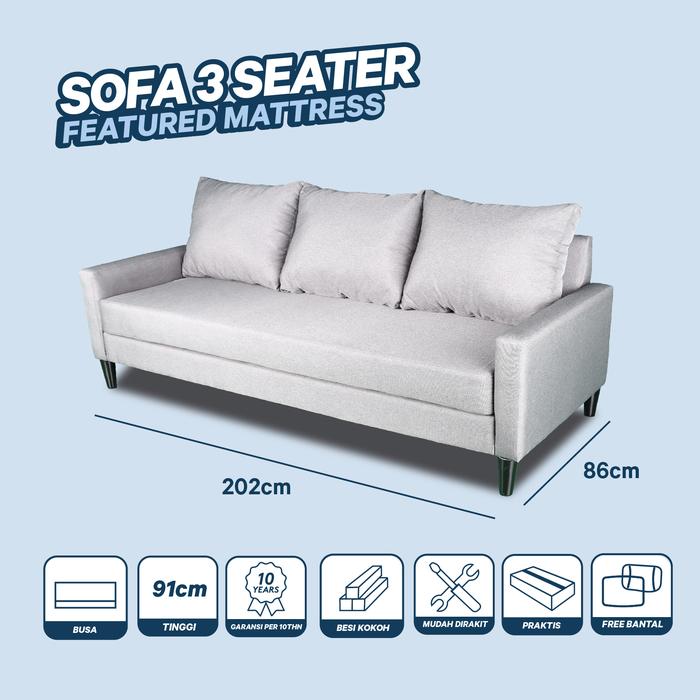 SOFA MINIMALIS POCKET SPRING IN THE BOX 3 SEATER - FREE BANTAL SOFA - LIGHT GREY
