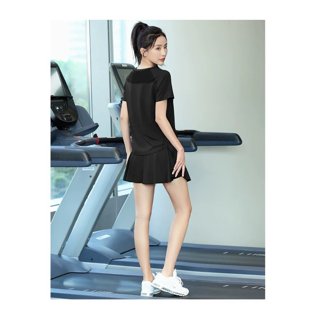 Fitme Kk-538 Setelan Set Baju Rok Pendek Atasan Lengan Pendek Olahraga Wanita Padel Gym Yoga Pilates Sport Tennis Olahra