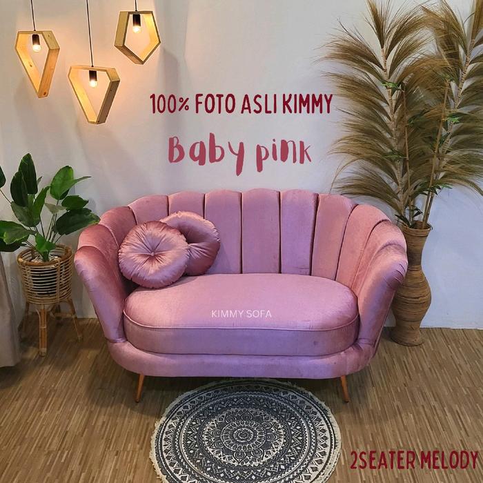 KIMMYSOFA KERANG NORDIC MELODY KIMMY SOFA RETRO IMPORT 2 SEATER 140CM - BABY PINK, 2SEATER