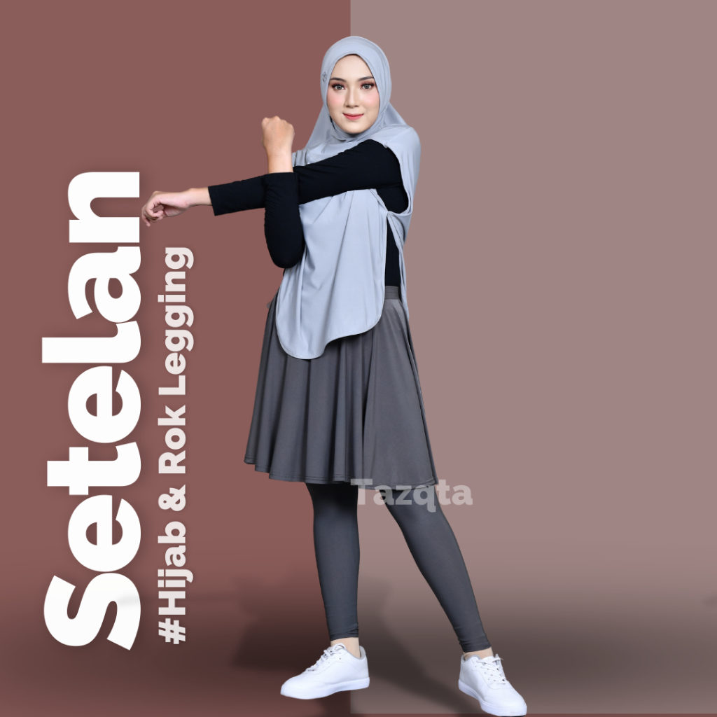 Setelan Sporty Jilbab Rompi Dan Legging Rok Olahraga Wanita