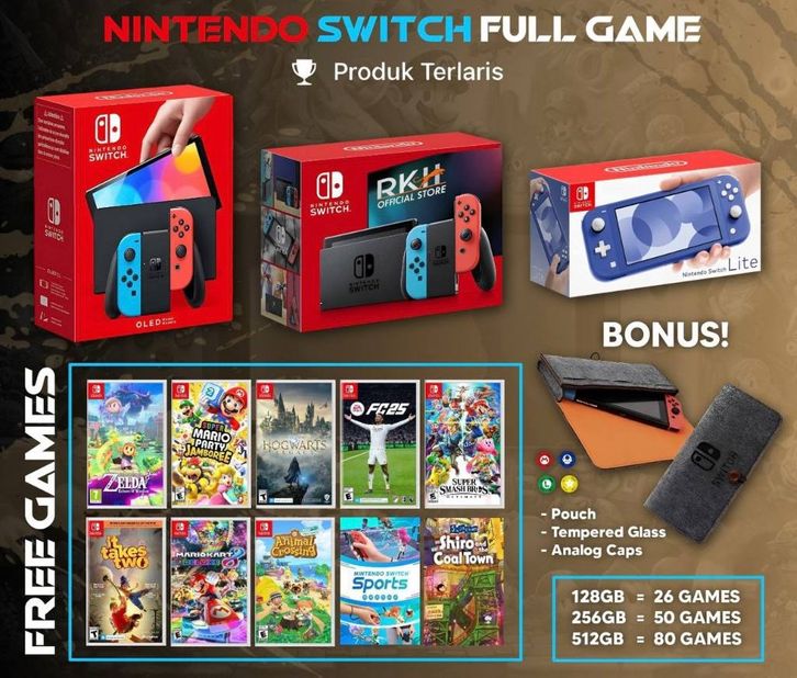 [Star] NINTENDO SWITCH CFW V1 V2 OLED CONSOLE GAME NINTENDO LITE 128GB 256GB 512GB BISA REQUEST GAME FULL GAME TERMURAH