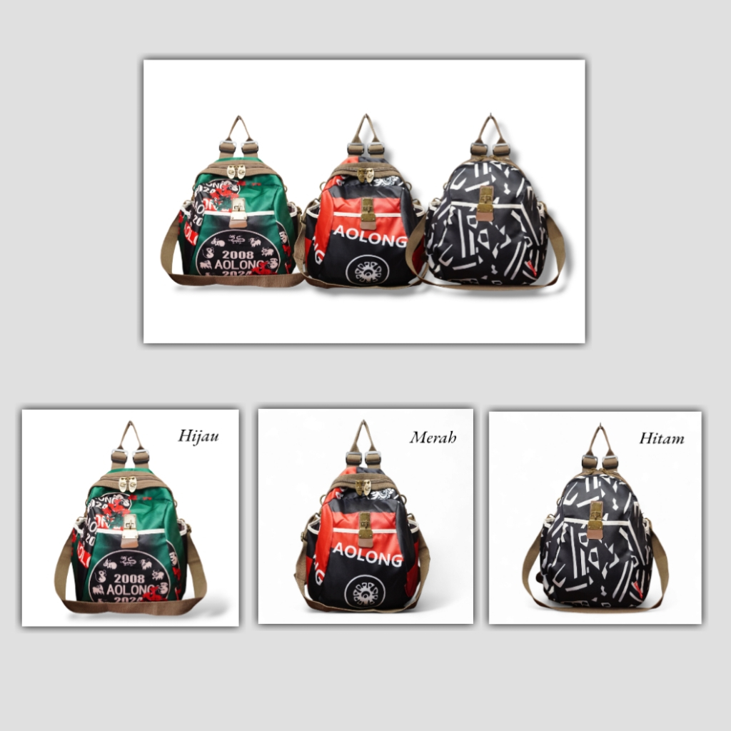 SH - AOLONG Ayara 5037 Tas Ransel Wanita Backpack Sekolah Cewek Bahan Parasut Muat Buku Tulis Hp RS