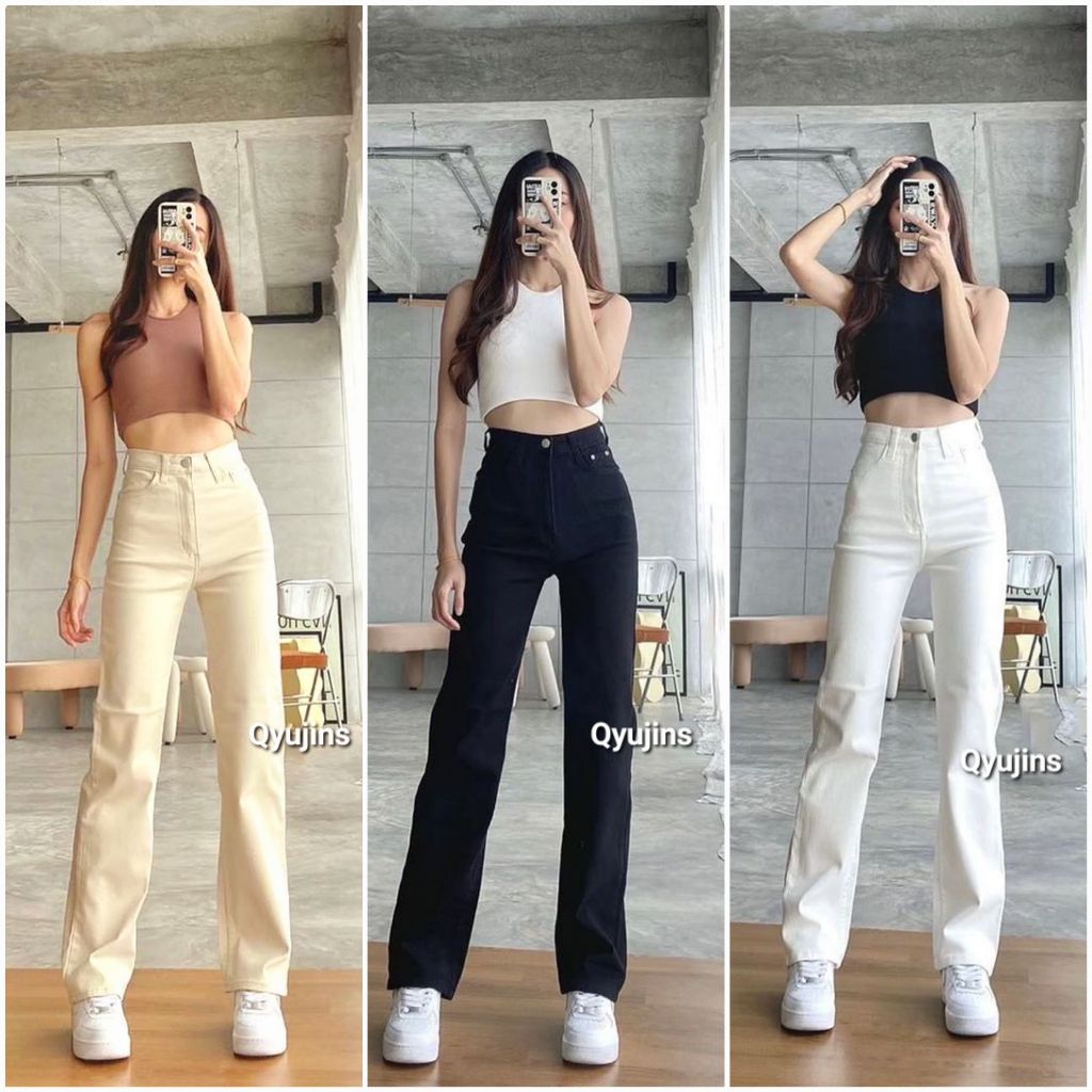 QYUJINS - BLACK HW LOOSE HIGHWAIST JEANS / HITAM HIGH WAIST JEANS / CELANA BIGSIZE HW LOOSE JEANS WANITA CEWEK