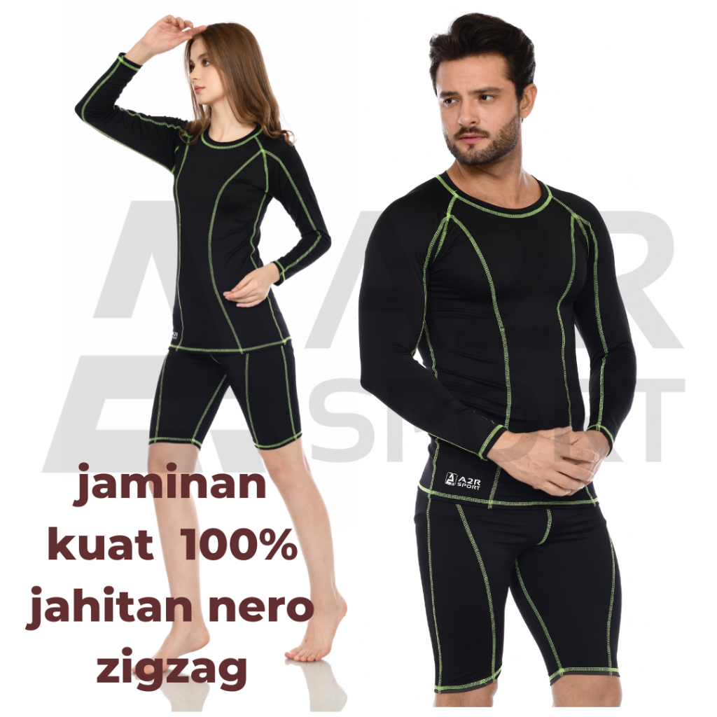 Baju Renang Dewasa .Setelan Bajurenang Lengan Panjang Pria Dan Wanita,Setelan Baju Renang Unysex 100 PERSEN Nero Sigzag