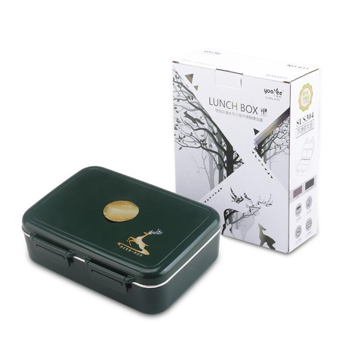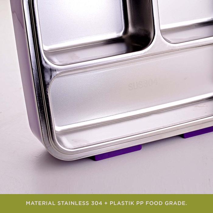 Yooyee Kotak Makan Stainless 3 sekat anti nyampur garpu hijau Plastik Sendok Kitchenware Ungu