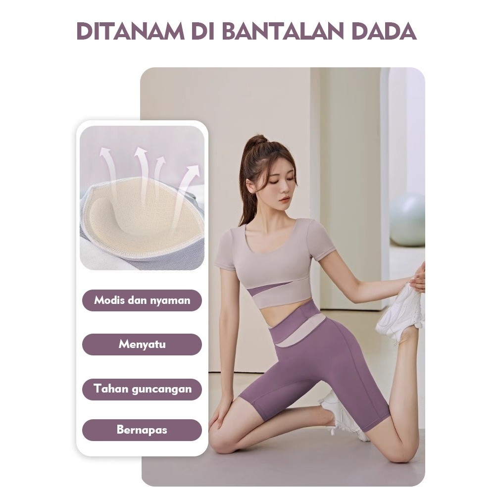 Setelan Yoga Wanita 2025 Terbaru Musim Panas|Baju Olahraga Lengan Panjang Cepat Kering|Dengan Bantalan Dada|Cocok Untuk