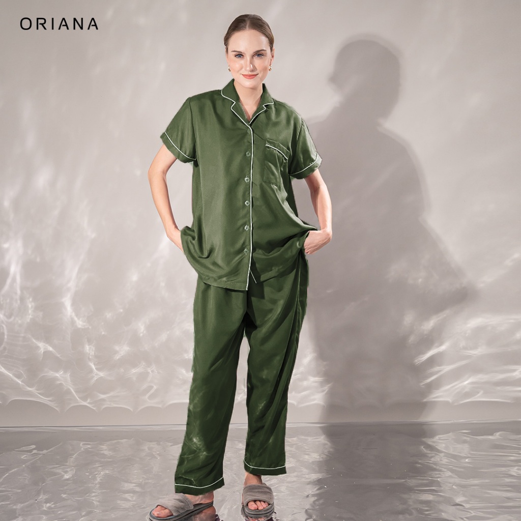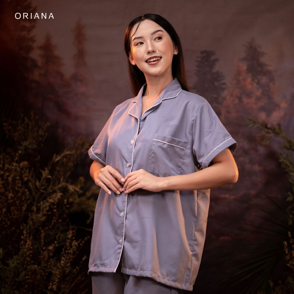Oriana Sleepwear Piyama Set Poly Bamboo Navya Series for Woman / Pajamas Wanita Sizing / Baju Tidur Wanita Tangan Pendek