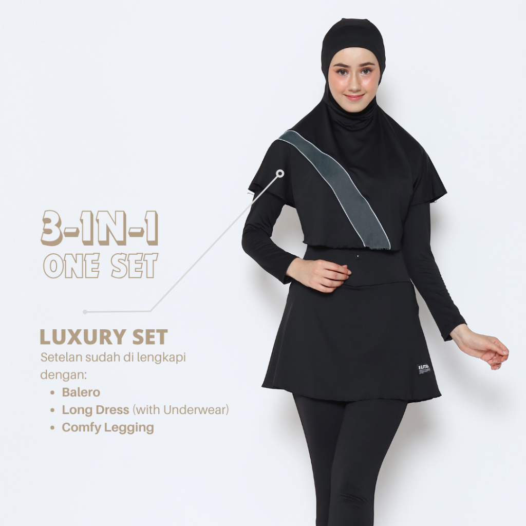 Elite - Baju Renang Muslimah Luxury | 3In1 | Active Swimwear