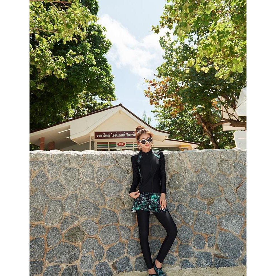 Mora Black Green Bikini Set 5 Pcs Woman / Baju Renang Wanita + Legging Swimsuit Rok Pantai / Baju Divi