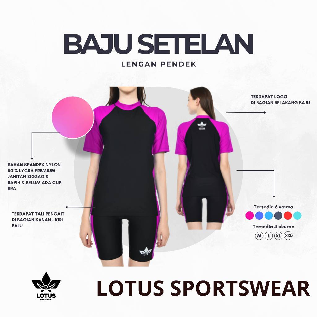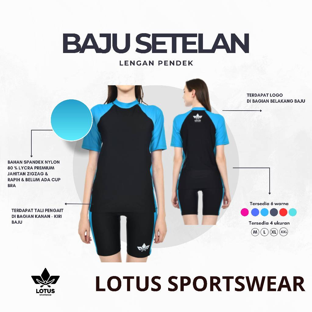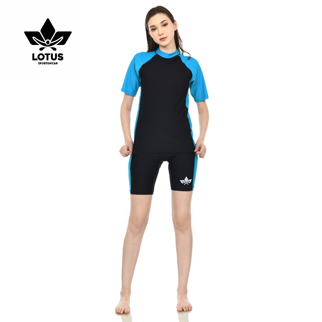 Baju Renang Wanita Dewasa Setelan Tangan Pendek Dan Celana Pendek