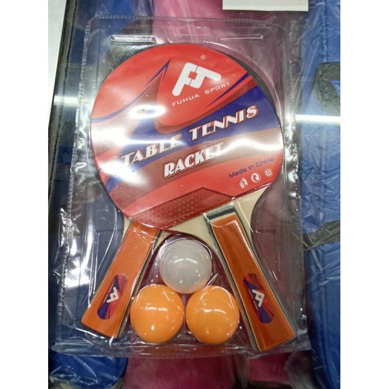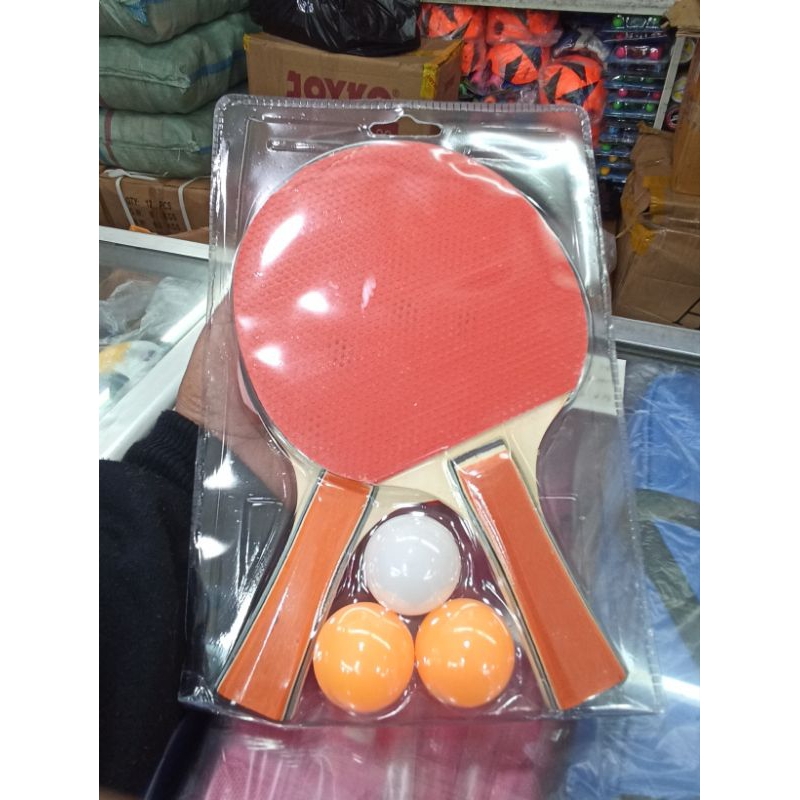 Satu Set Tenis Pingpong Bat Tenis Meja Untuk Pemula Kayu Padat Bonus 3 Bola