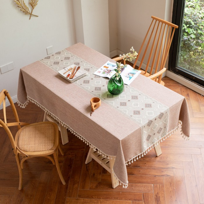 Tassel Embroidered Table Cloth / Taplak Meja Makan Tebal Renda Rumbai