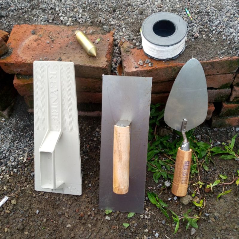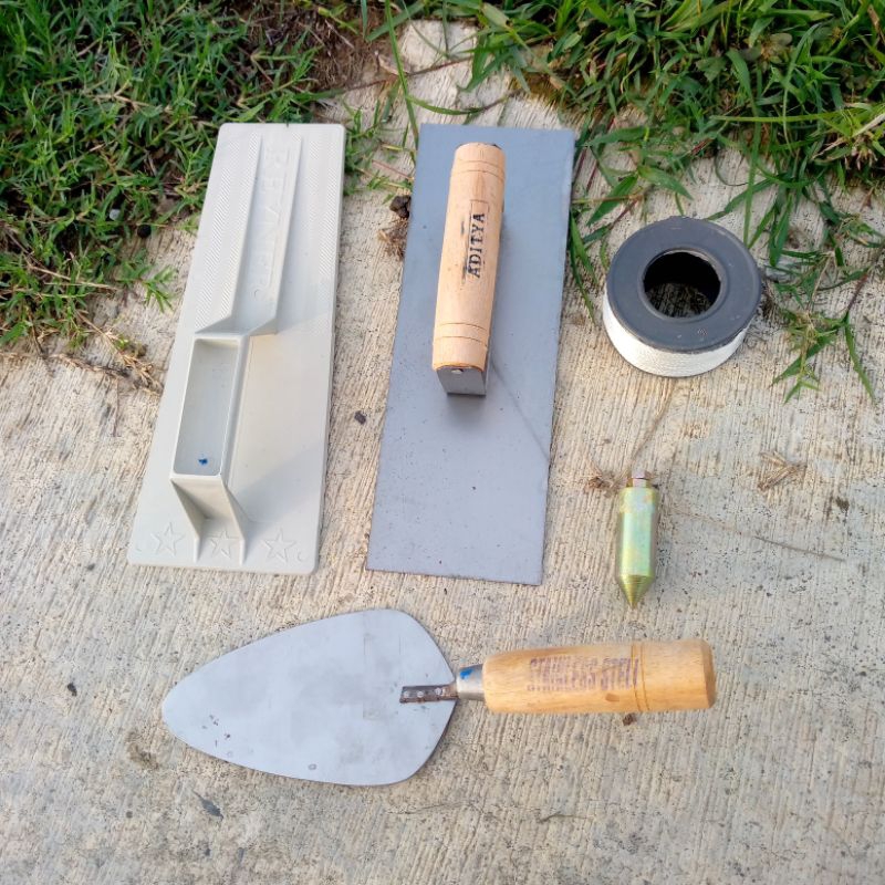 Satu Set Isi 5pcs Peralatan Tukang | Raskam Plastik, Raskam Baja, Sendok Semen, Bandul/Lot Benang Nilon,
