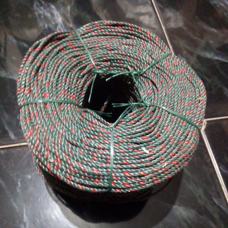 1 Roll Tali Tambang Ukuran 3mm -+200Meter Hijau Bintik Merah Plastik PE