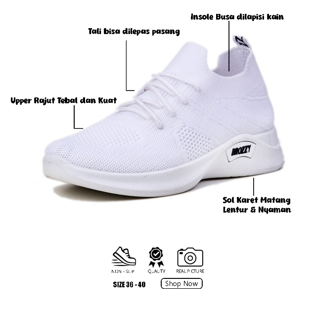 Brozzy Sepatu Wanita Rajut D14/D11/D12 Sneakers Senam Olahraga Lari Kasual Import Premium