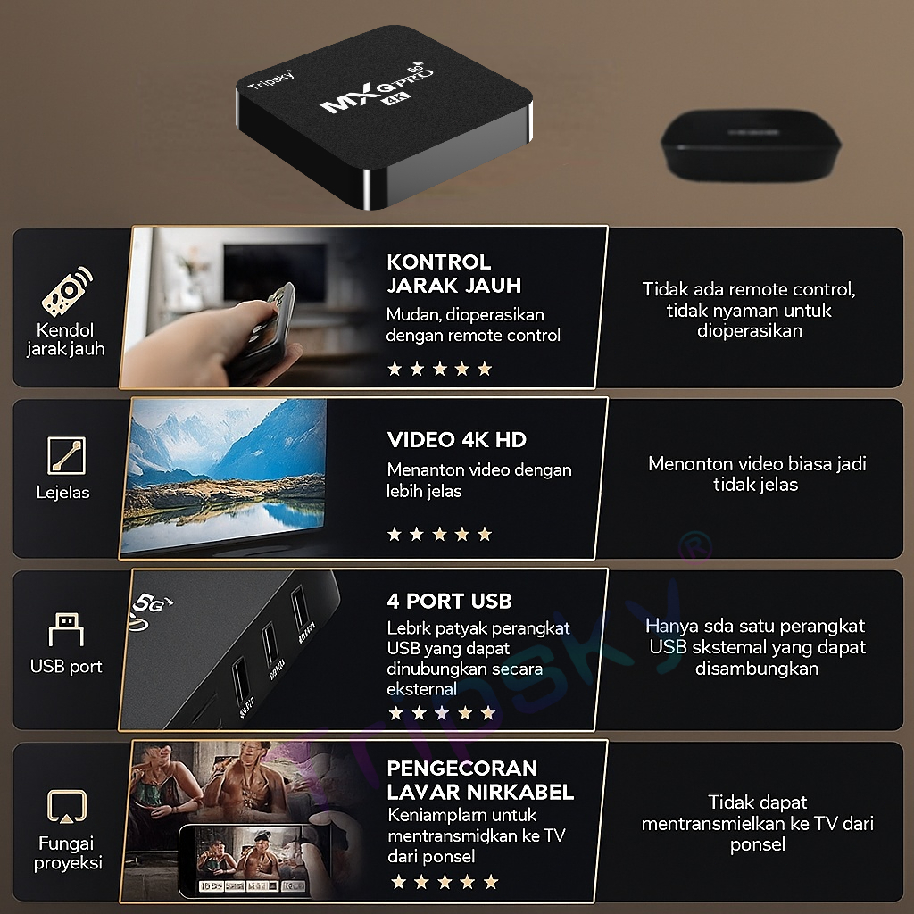 Tripsky MXQ Pro 4K Android Tv Box 5G 8gb+256gb Ram New Chipset OS Smart full hd TV box