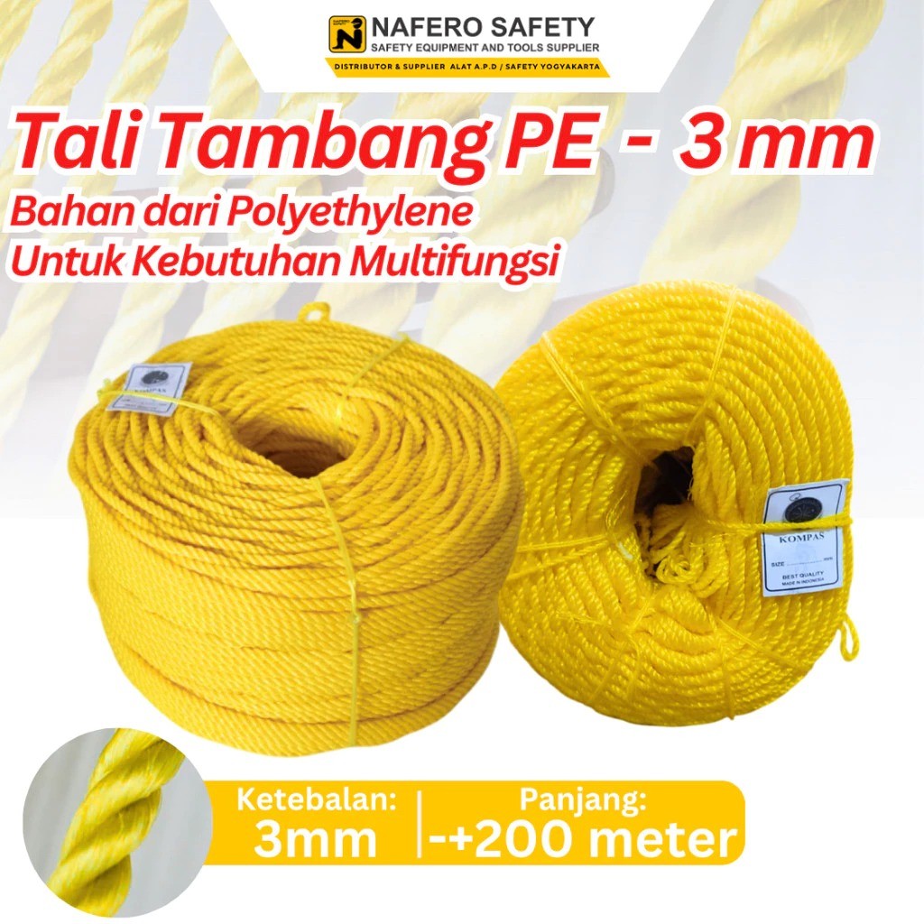 Tali Tambang PE KOMPAS ukuran 3mm Panjang 200meter tiap Roll yellow tali proyek banguanan dll