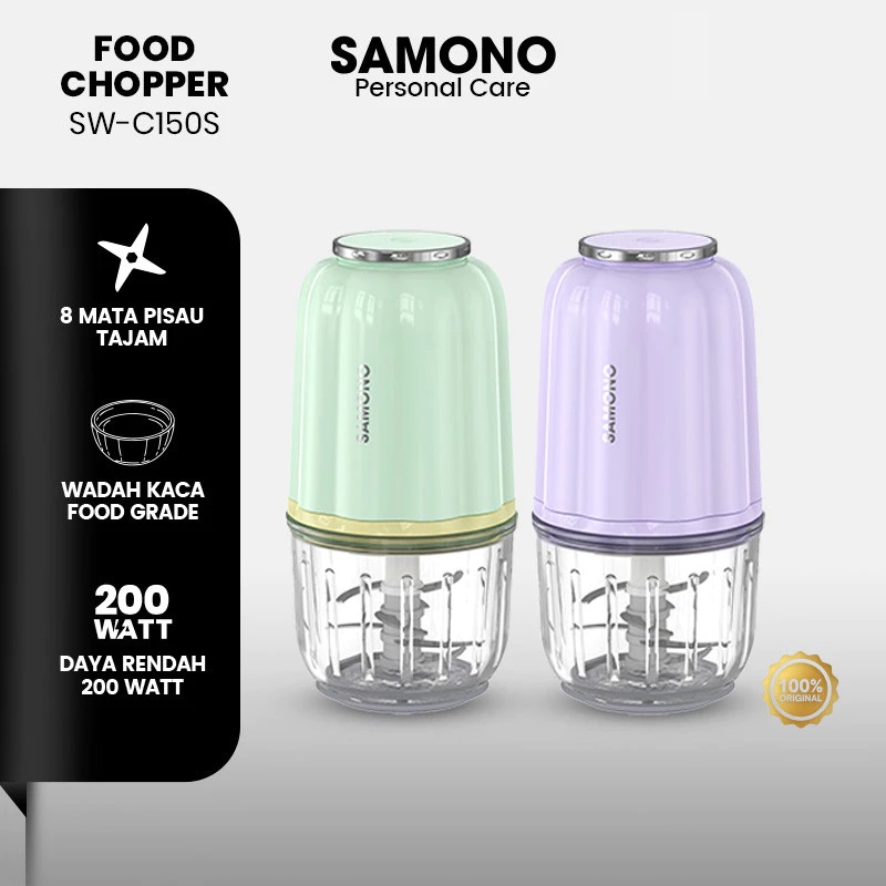 SAMONO Chopper Daging Bumbu MPASI 200 Watt Kapasitas 300ml 8 Mata Pisau food grade, mata pisau stainless steel SW-C150S