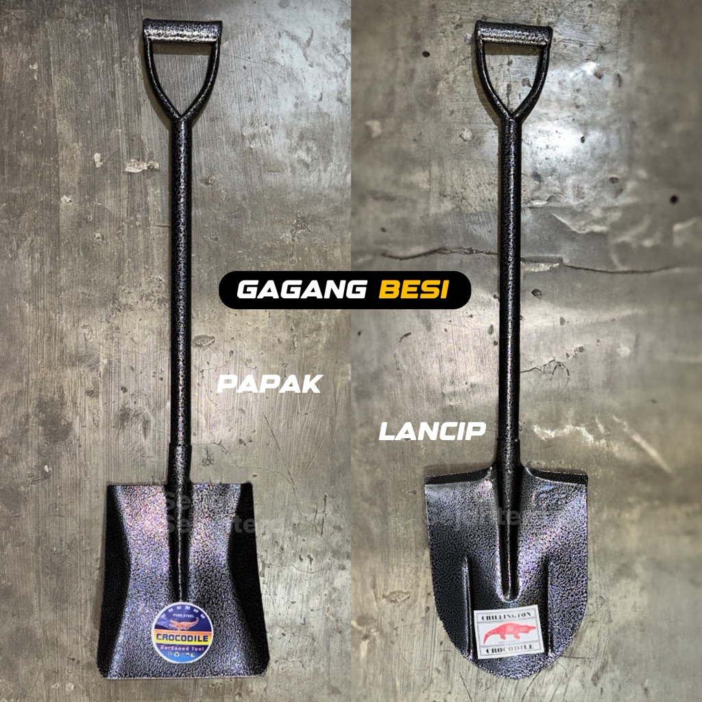 CROCODILE Sekop Pasir Gagang BESI Cap Buaya Papak Lancip Gagang Skop Berkebun Konstruksi - 1 pcs