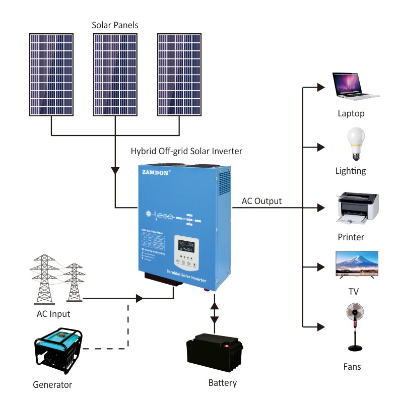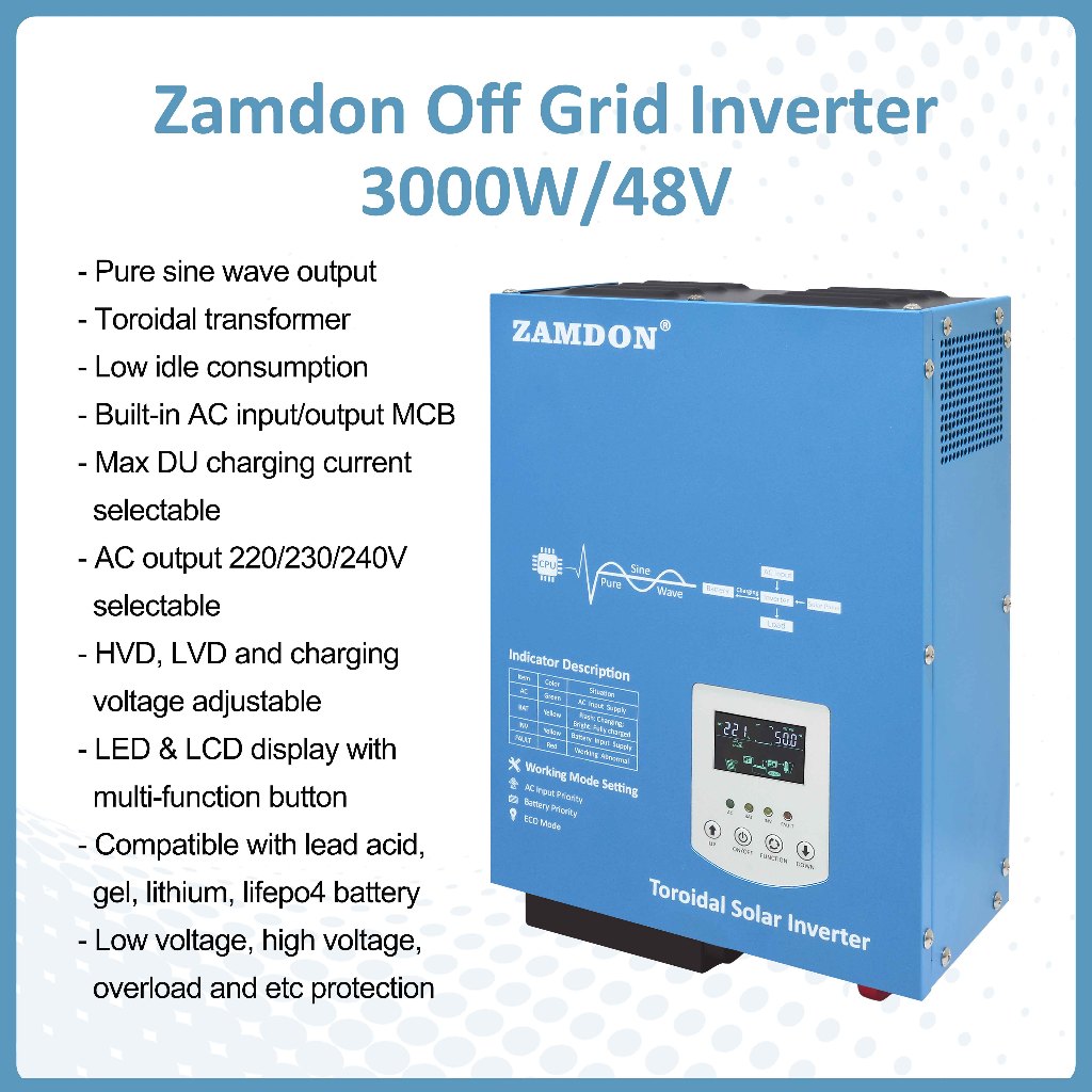 Zamdon Frekuensi Rendah 3.2KW/4KVA 48V Off grid Inverter Surya Hybrid dengan built-in 60A MPPT Garansi Dua Tahun Built-in trafo toroidal