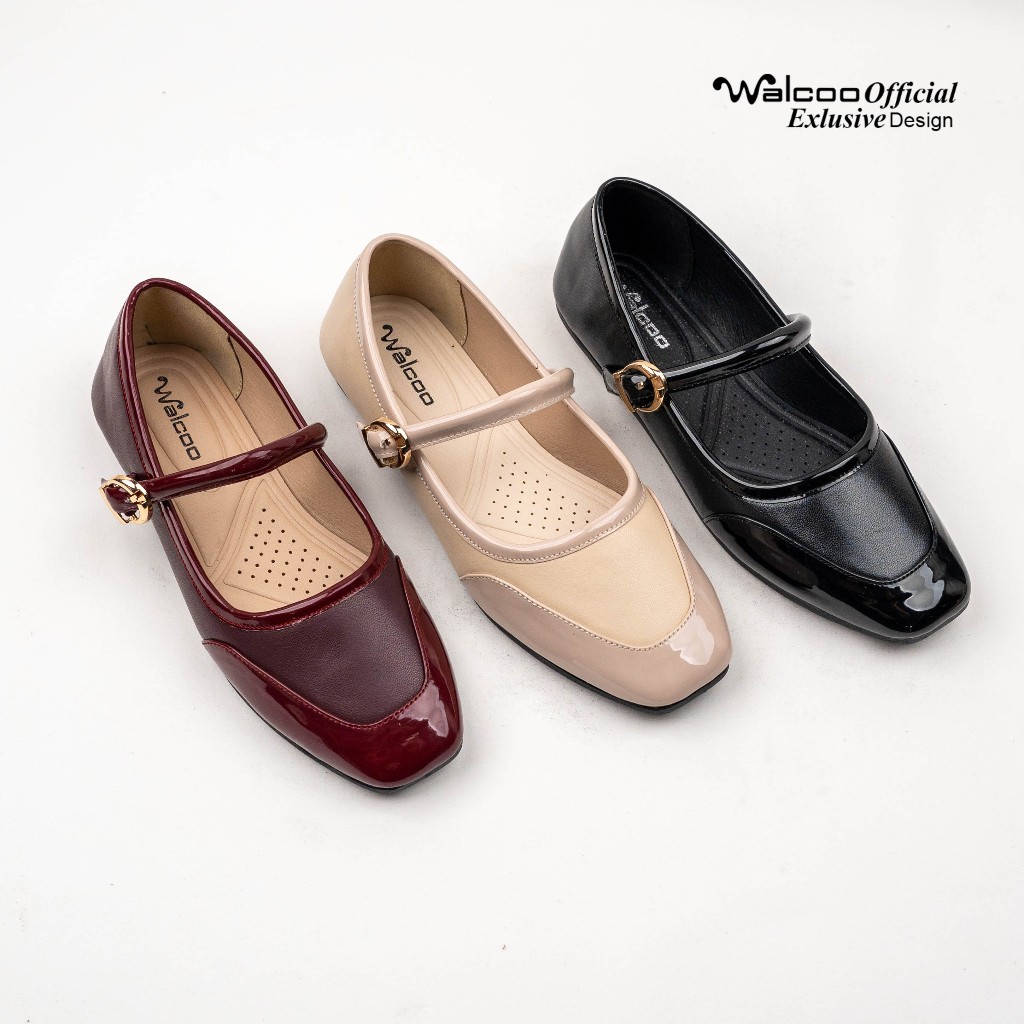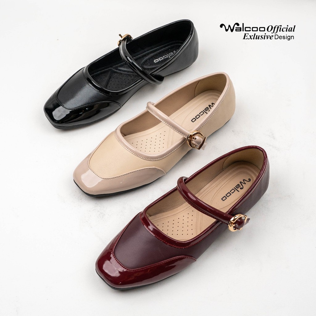 Walcoo Clowy Sepatu Ballet Wanita Lucu Bahan Glossy Mix Sintetis